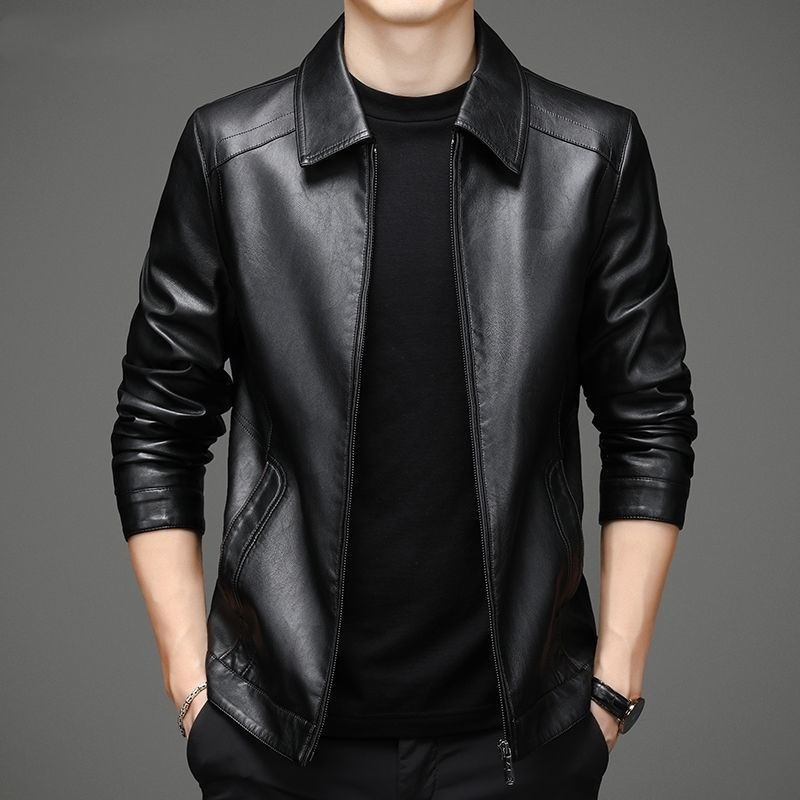 Thin Fleece-lined Soft Leather Jacket For Dad