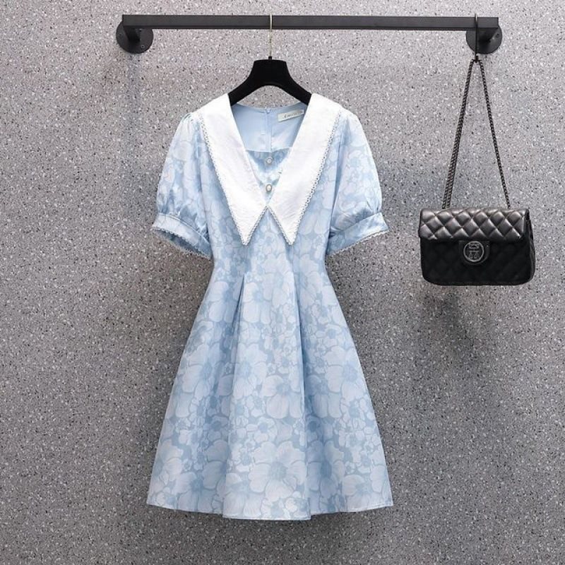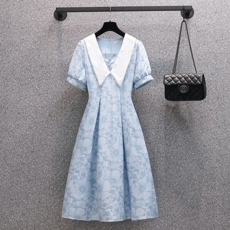 Plus Size Women’s Summer Cover Belly Foreign Style Doll Collar Dress